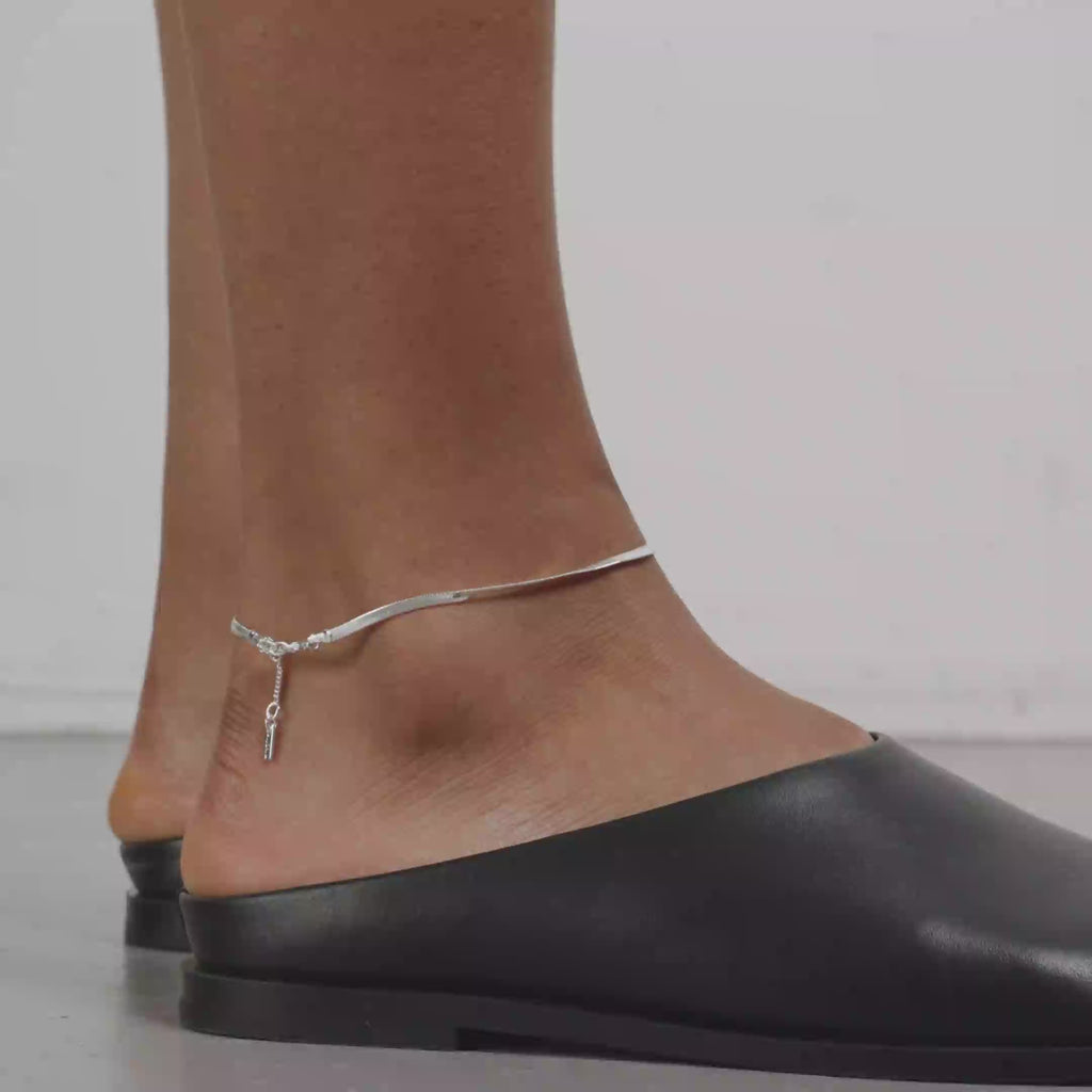 - Silver-plated flat snake-chain anklet.