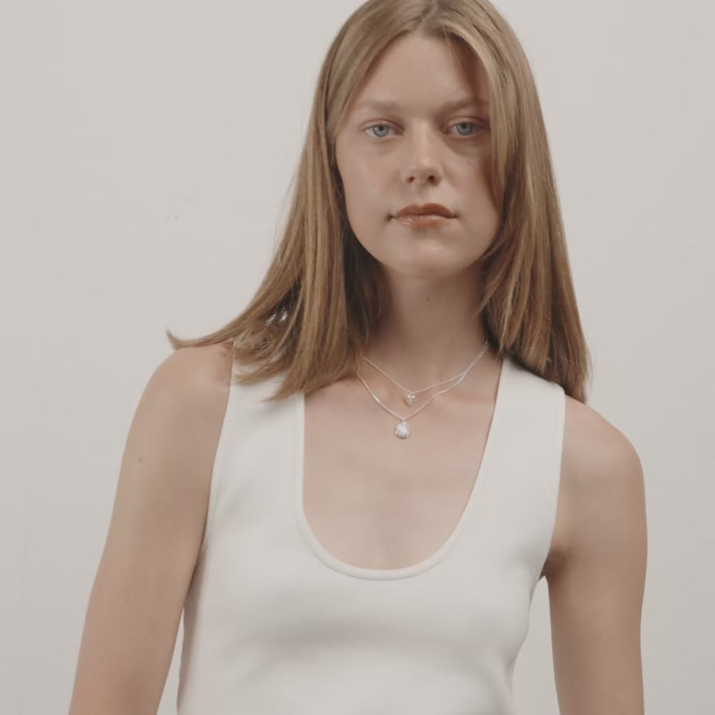 Double the style! Silver-plated set featuring two distinct necklaces – one a braided chain and the other a coin chain with a rustic, shiny pendant. Ideal layering pieces for a stacked style that captures seasonal trends, or wear them individually for a minimalist statement that elevates your everyday outfits. Crafted from 99% recycled material – fashion with care for the planet.